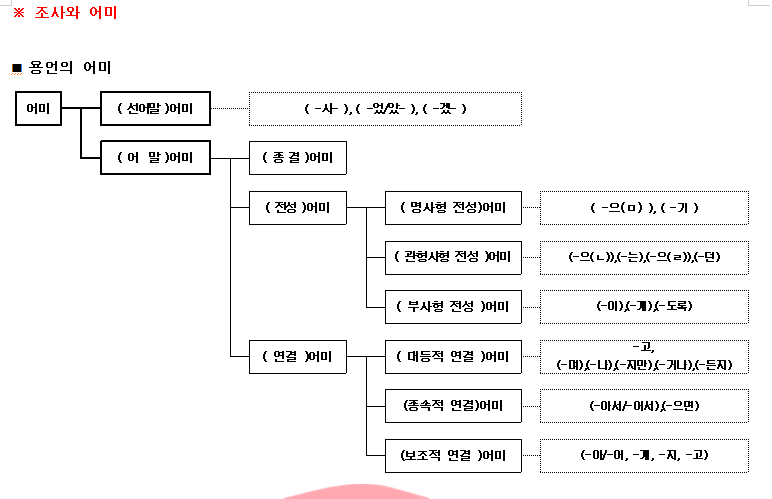 그렇기 때문에 이번 시간에서 어미의 개념과 종류를 전부 살피고, 확실한 개념을 가져가기를 바라겠습니다.